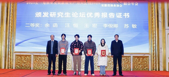 本次大会不仅展示了长三角地区在渔业“新质生产力”方面的最新探索成果,也为三省一市的渔业科技工作者搭建了高水平的交流合作平台,对推动长三角渔业一体化、绿色化、智能化发展具有重要意义。我院师生积极参与会议交流,不仅激发了师生投身科研创新的内生动力,也充分展现了我院在渔业领域的扎实科研实力,有力提升了我院在安徽省乃至长三角区域现代渔业研究领域的影响力与知名度。