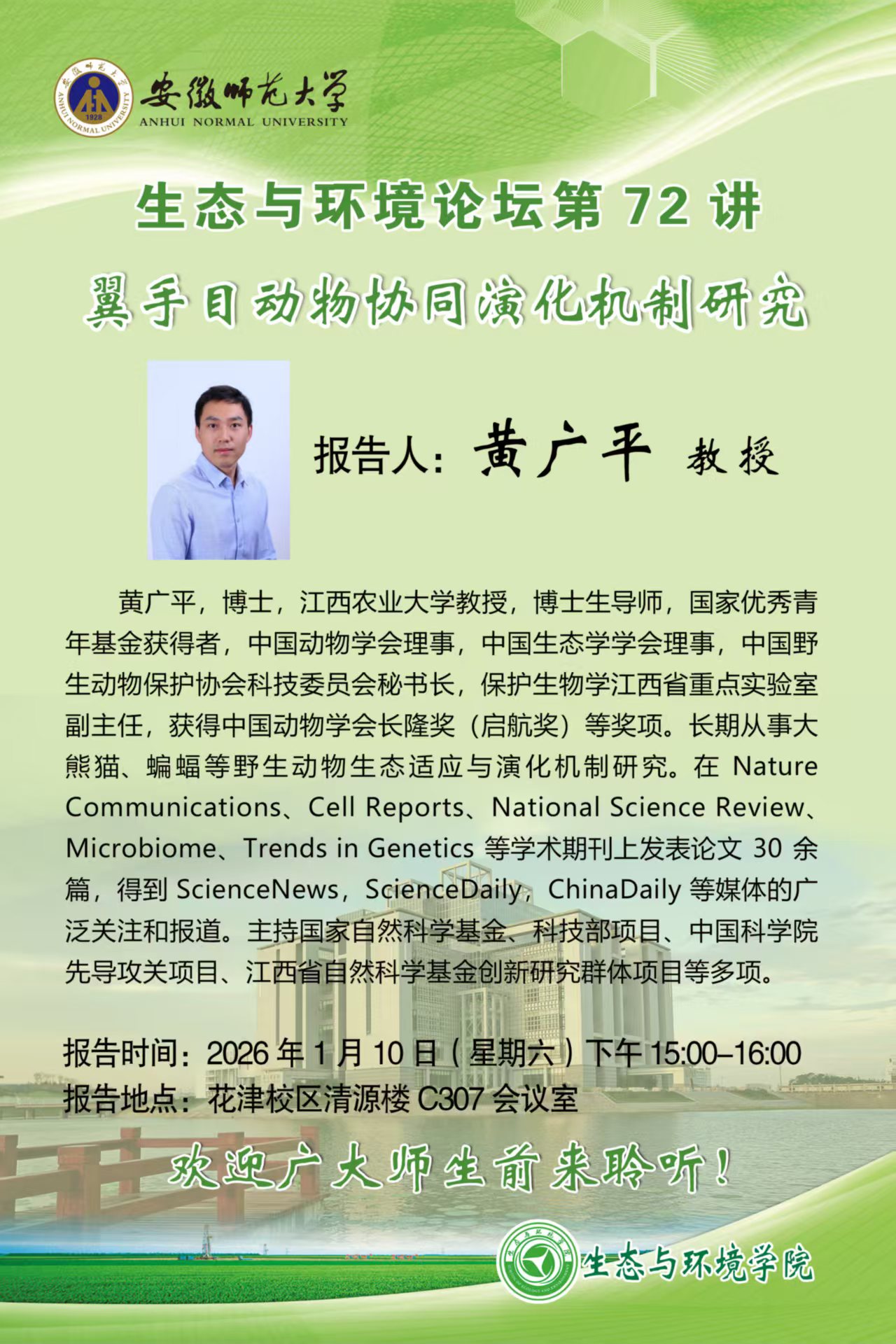 生态与环境论坛第72讲:翼手目动物协同演化机制研究